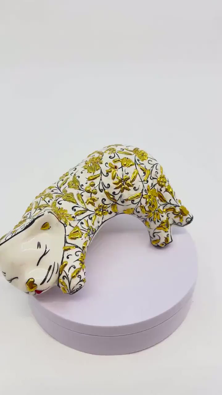 Short Description: Enhance your home decor with this exquisite hand-painted Turkish ceramic cat figurine! 🐱Featuring intricate gold floral designs, this unique piece is perfect for cat lovers and art enthusiasts alike. 🎨Shipped fast from Turkey in just 3-5 days! 🚀✨