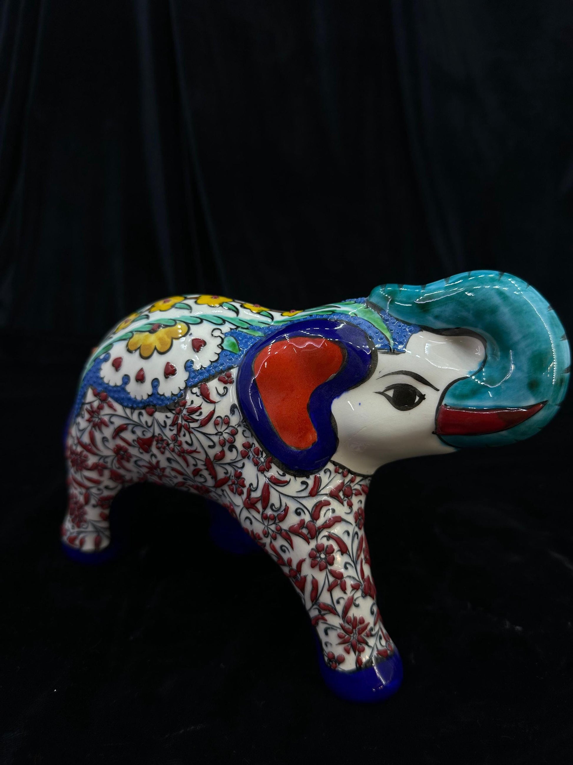 Short Description: Enhance your home decor with this exquisite hand-painted Turkish ceramic elephant figurine! 🐘Featuring vibrant floral designs, it's a unique piece perfect for collectors and elephant lovers alike. 🎨Shipped fast from Turkey in just 3-5 days! 🚀✨