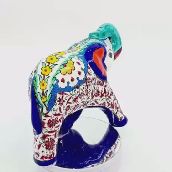 Hand-Painted Turkish Ceramic Elephant Figurine: Floral Home Decor