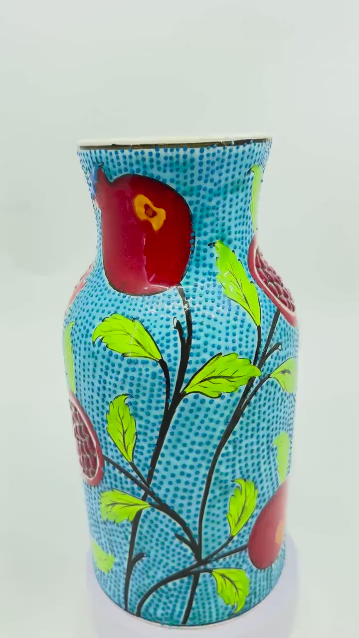 Hand-Painted Turkish Ceramic Vase: Pomegranate Floral Decor