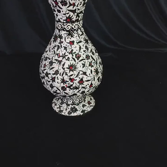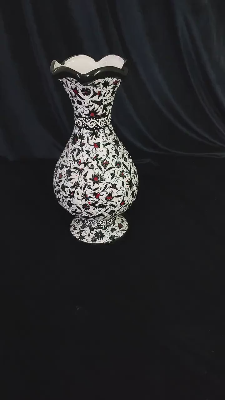 Handmade Black and White Turkish Ceramic Vase - Hand-Painted Floral Anatolian Pottery, Decorative Table Centerpiece