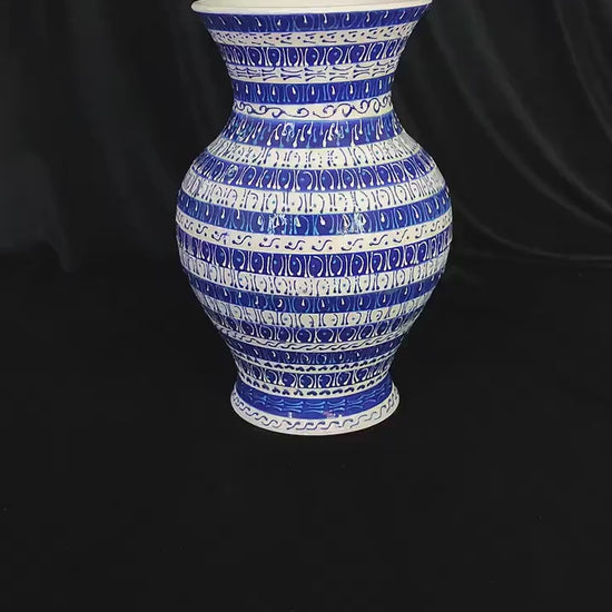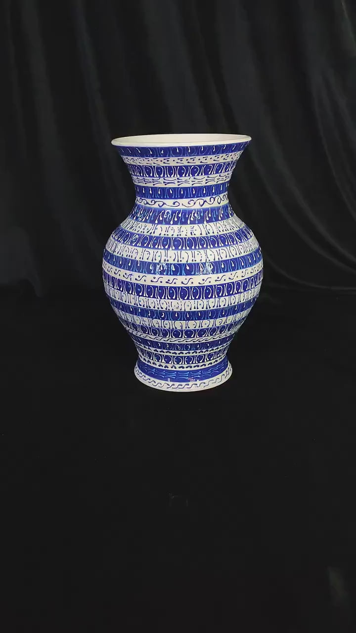 Shamil Art House Enhance Your Home with Our Handmade Blue Mandala Striped Ceramic Vase! 🌿🏺