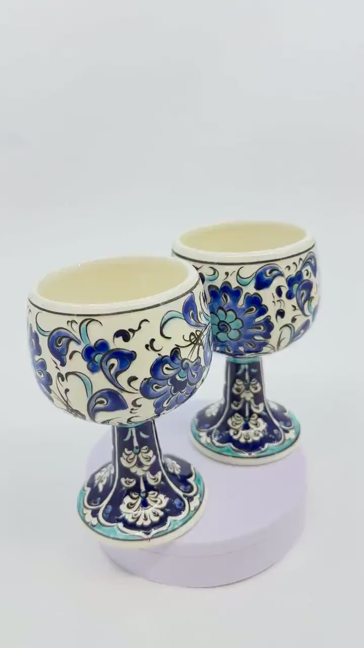 The timeless Turkish design adds a touch of cultural heritage to your table, while the durable ceramic material ensures long-lasting use. Whether used for a romantic dinner, a special celebration, or displayed as decor, these goblets bring sophistication and charm to any setting.