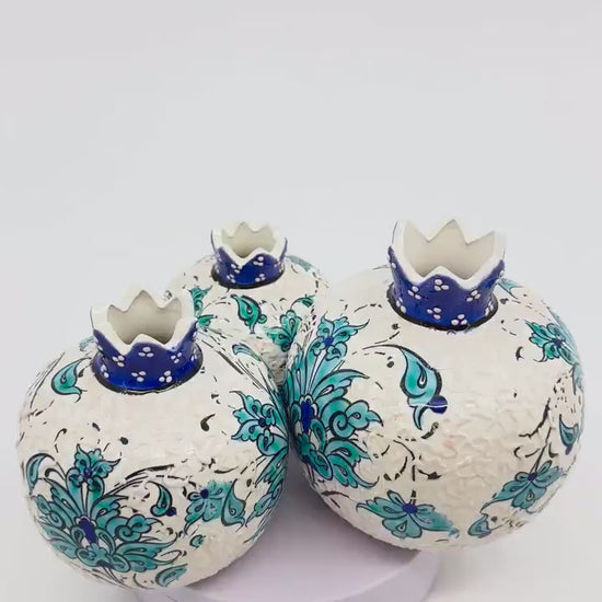 Handmade Ceramic Pomegranate Set - 3-Piece Decorative Ornament -Turkish Pottery Gift - Unique Home Decor Accent