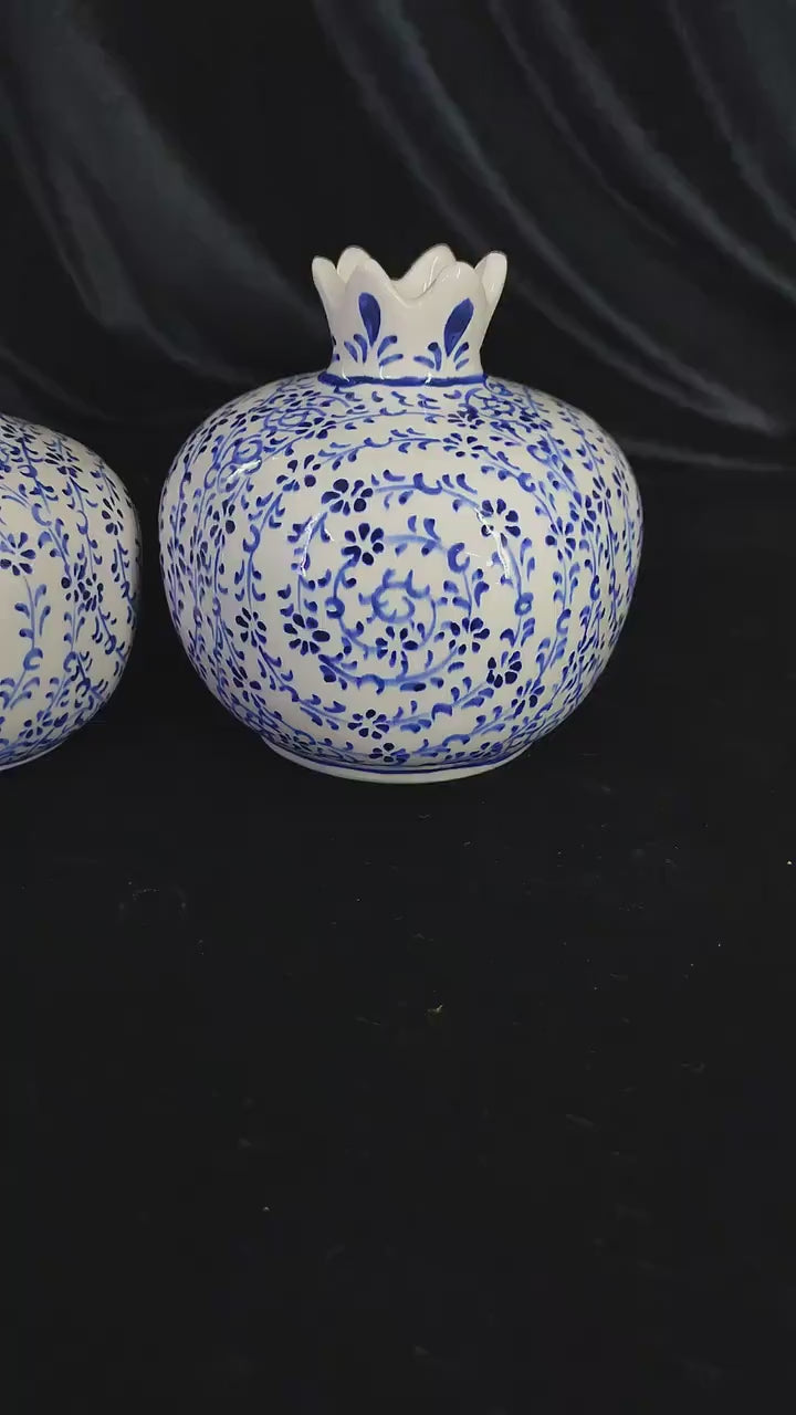 A unique touch that will complement the elegance of your home: Handmade blue triple ceramic pomegranate set!