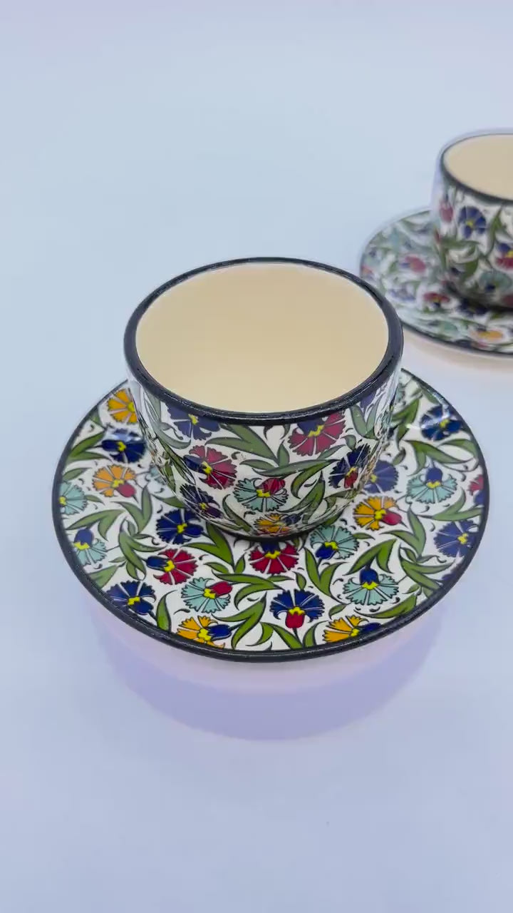 🍵 Enjoy your tea with this handmade ceramic tea cup and saucer set, painted with vibrant Turkish floral motifs. Each set includes 2 cups and 2 saucers, carefully crafted and hand-painted by skilled artisans in Turkey. A perfect blend of tradition and charm for your tea time.