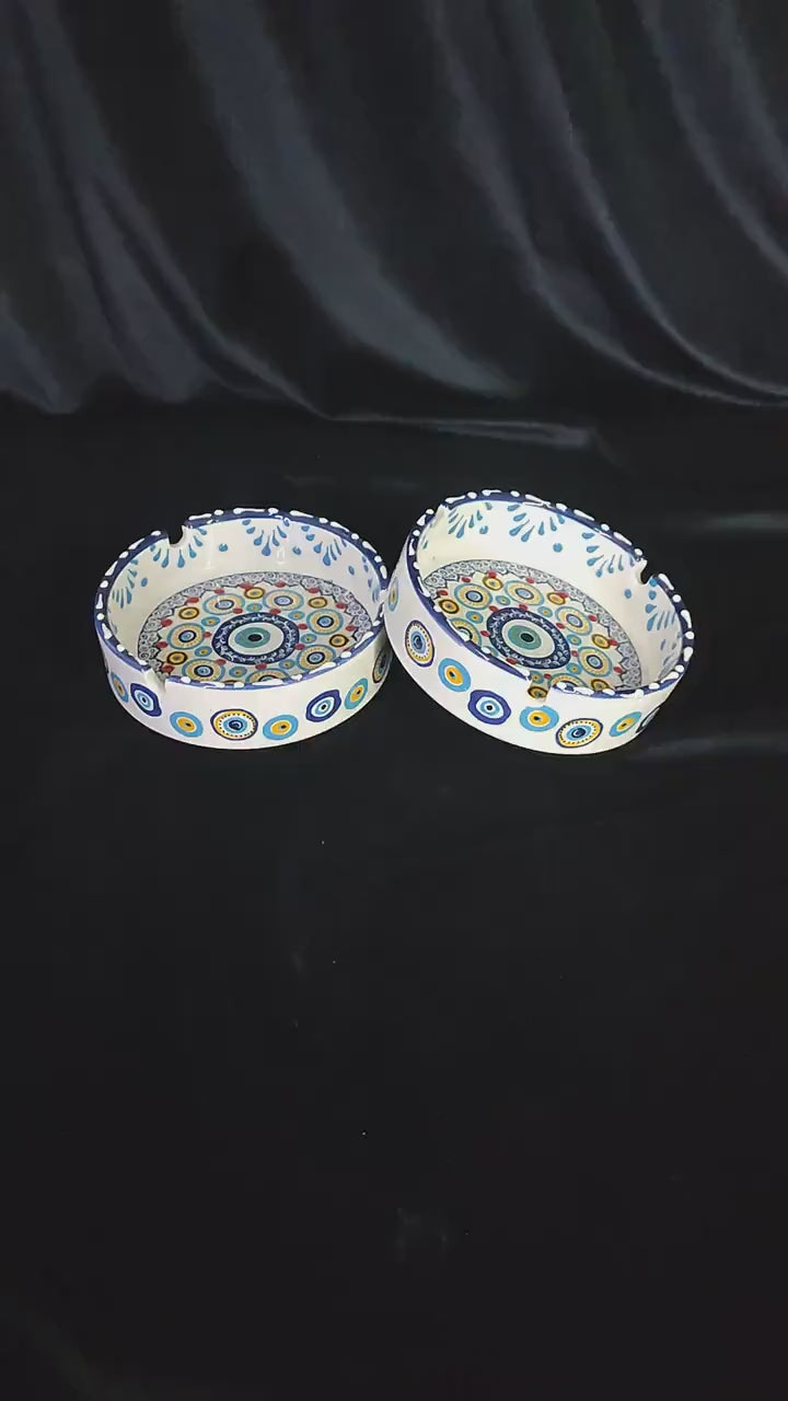Handmade Evil Eye Ceramic Ashtray Set: Turkish Floral Decor