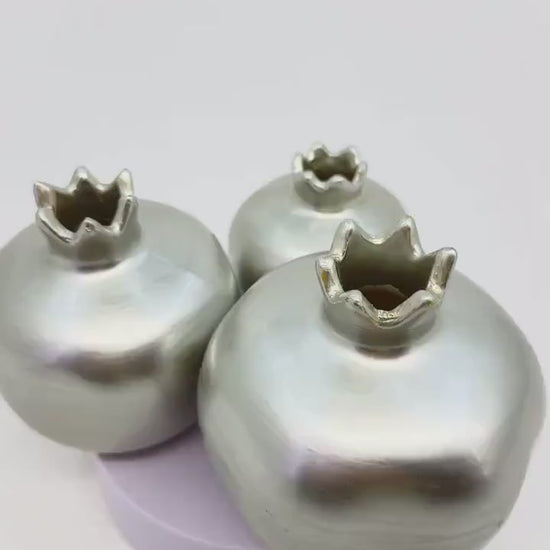 Design: Handmade ceramic pomegranates with a luxurious silver finish, inspired by Turkish craftsmanship.