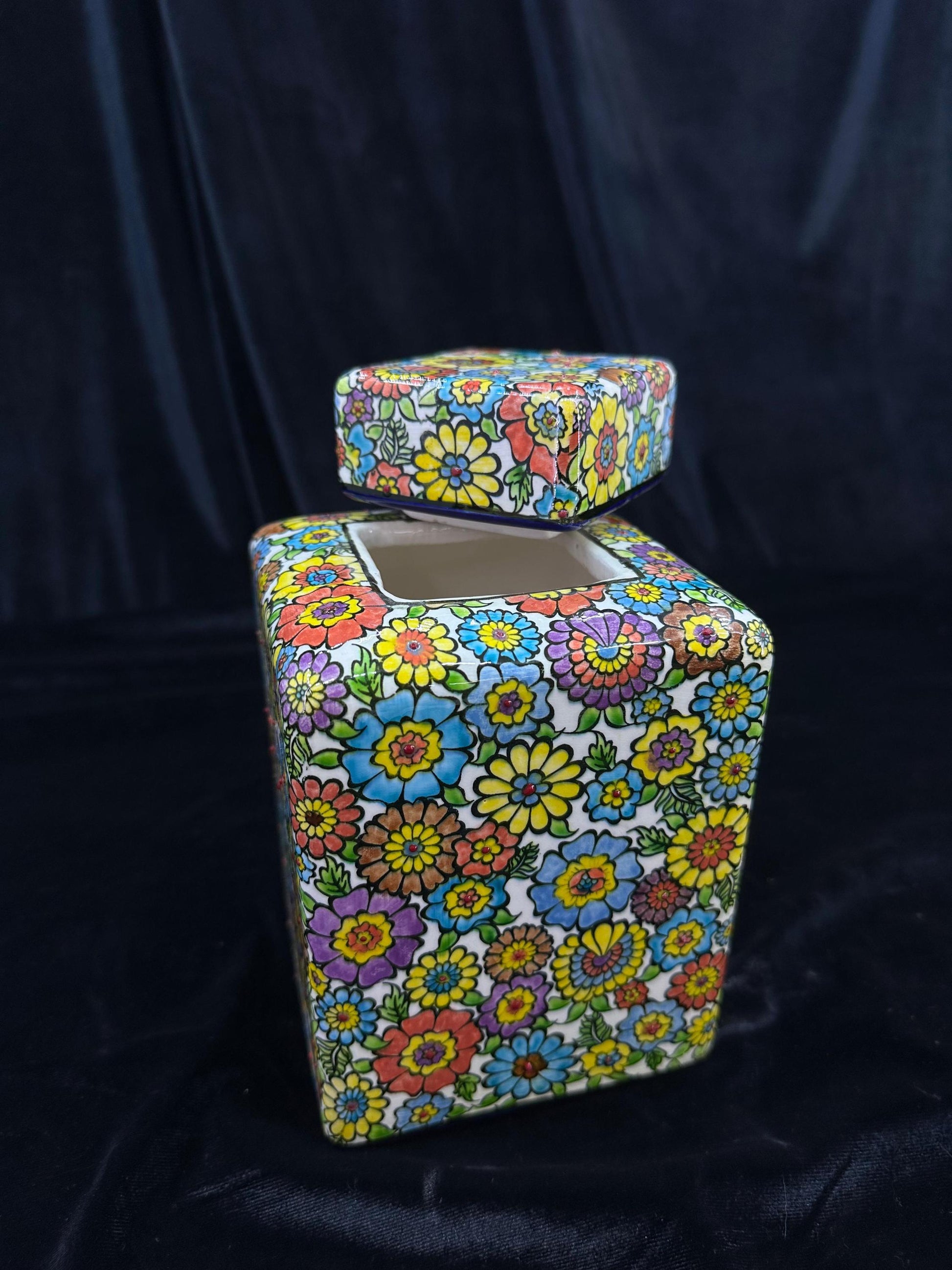 Handmade Turkish Ceramic Jar with Lid - Colorful Floral Pottery