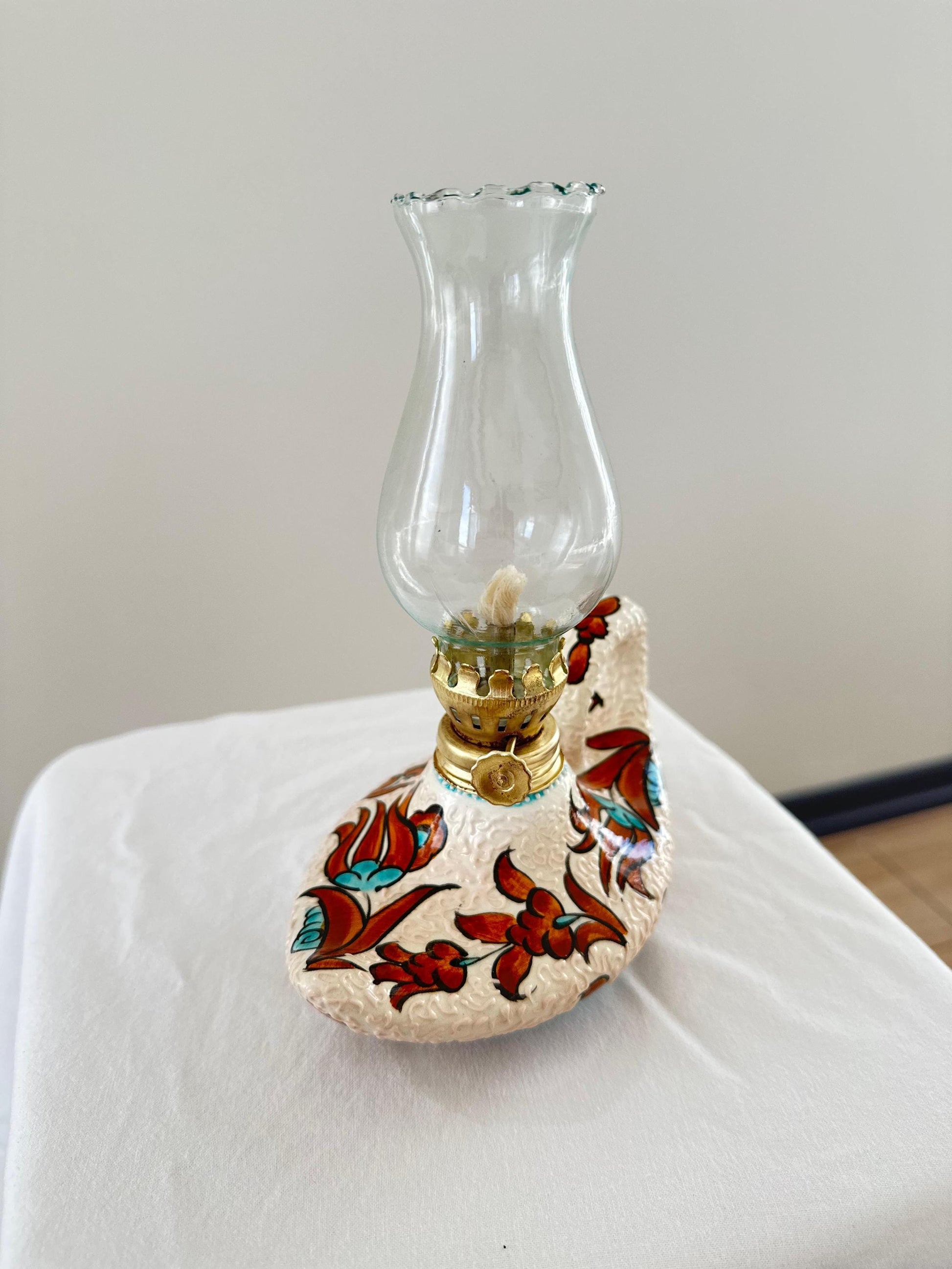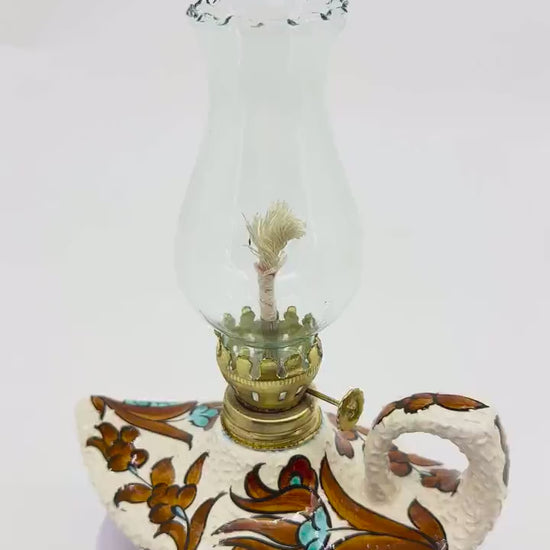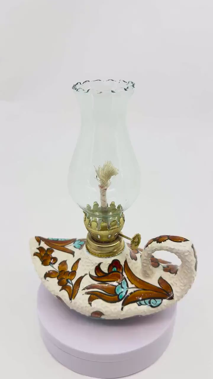 Illuminate your space with this exquisite handmade Aladdin-style oil lamp, crafted with Turkish ceramic designs. A perfect touch of vintage charm! 🕯️✨