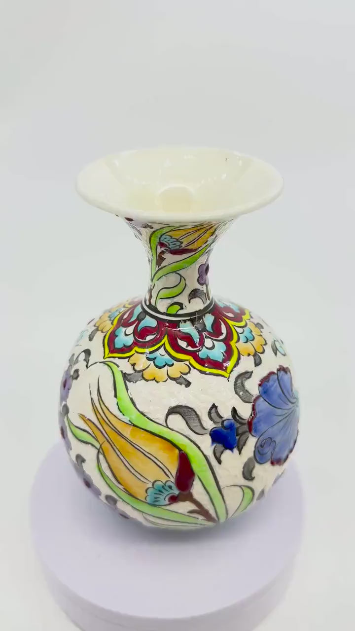 Rooted in centuries of Turkish ceramic artistry, this vase is more than just a decorative object—it is a symbol of tradition, creativity, and craftsmanship. Each piece is hand-shaped, painted, and glazed with utmost precision, reflecting the vibrant spirit of Turkish pottery. The intricate floral designs represent nature's beauty and harmony, making this vase not just a home accessory but a piece of history.