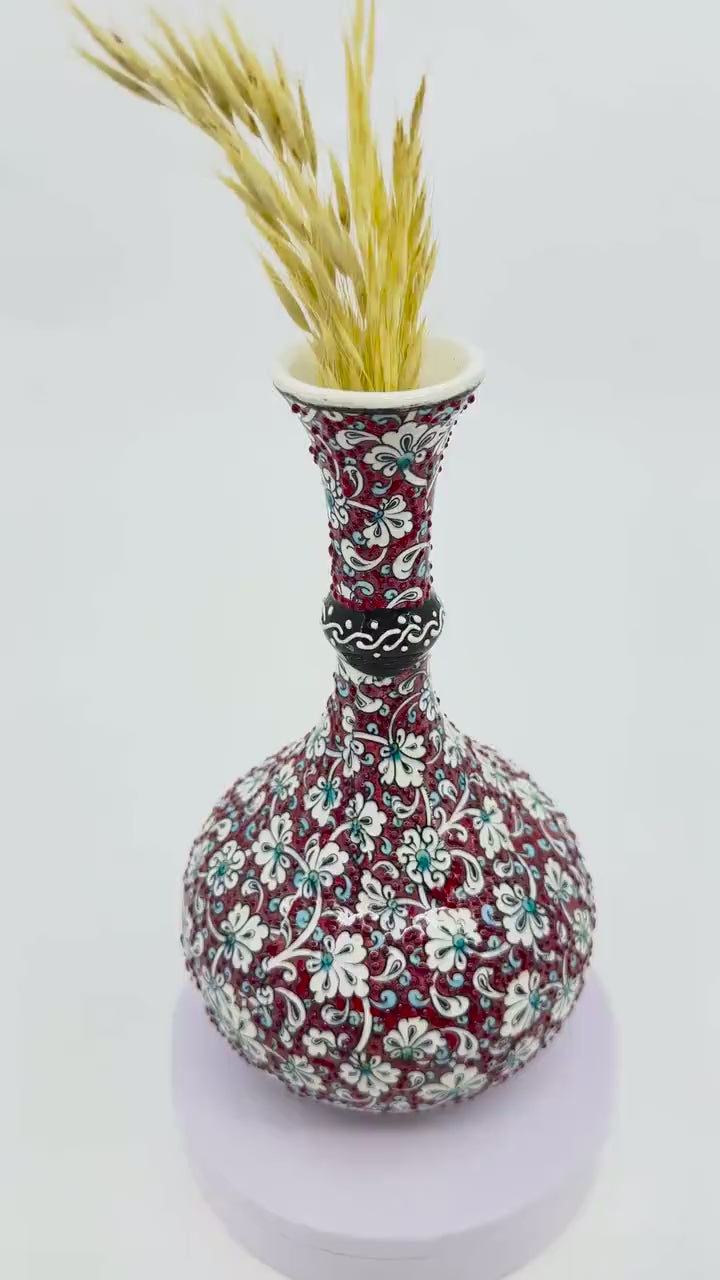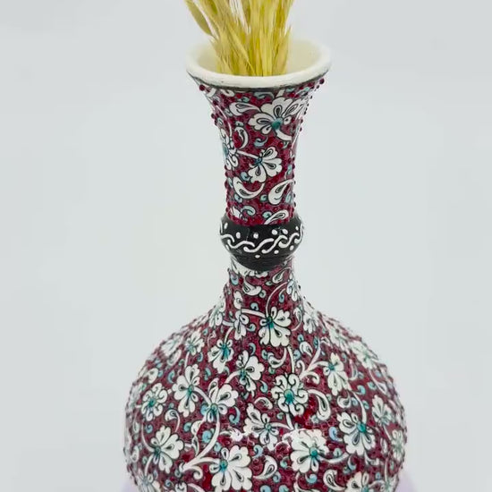 Handmade Turkish Ceramic Vase: Red Floral Boho Decor