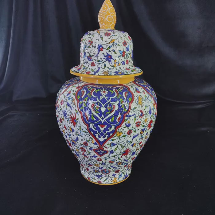 Handmade Turkish Ceramic Vase with Lid: Ottoman Floral Decor (12 inch)