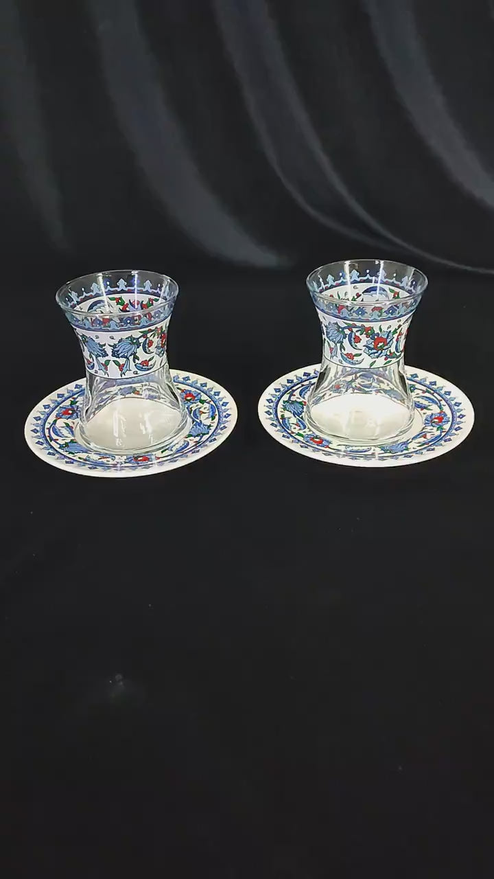 Authentic Craftsmanship: This exquisite tea set includes two glass teacups, each adorned with traditional Turkish patterns, reflecting the rich cultural heritage of Anatolia.