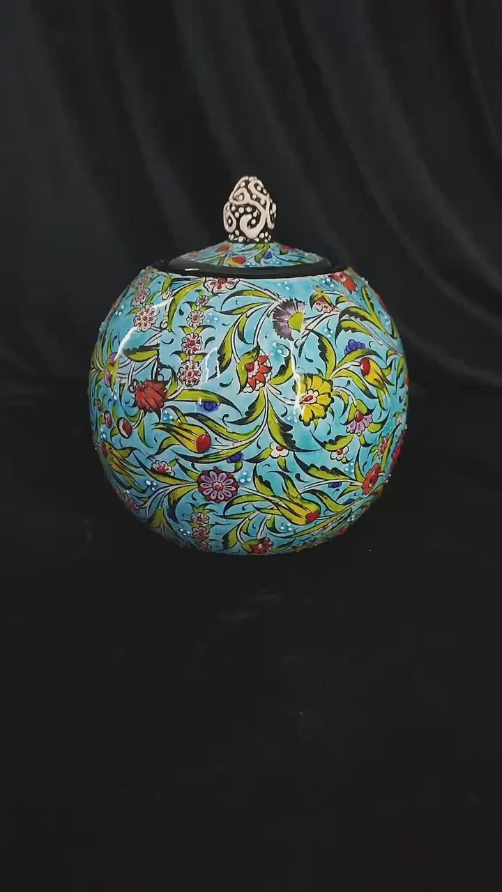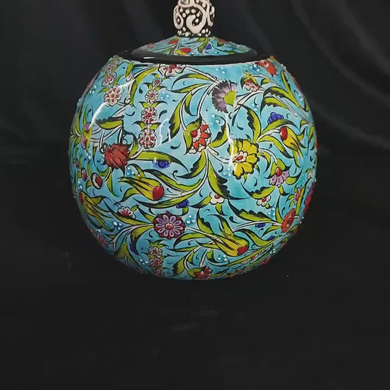 Turquoise Ceramic Sugar Bowl With Lid, Handmade Round Sugar Bowl, Ceramic Creamer, Pottery Sugar Bowl, Decorative Bowl, Lidded Sugar Bowl 5"